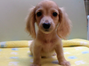 若いご夫婦のお家へ旅立ちます。お2人はずっとクリーム色のミニチュアダックスを探されていたようで、きれいな毛色のこの子を気に入っていただき、決意されました。おっとりしていて、誰からも愛される優しい子なのでかわいがってもらえるはずです。また、遊びに来てね♪