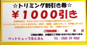 生後半年までのトリミングを¥1000引き致します