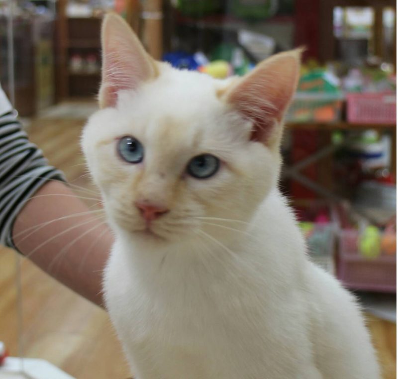 白にしっぽが茶色?ブルーの目に本当に人懐こい、やんちゃで遊び好きな坊や❤