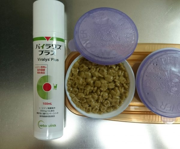 くしゃみ鼻水めやにがまだでるので、Lリジンのサプリを入れて~