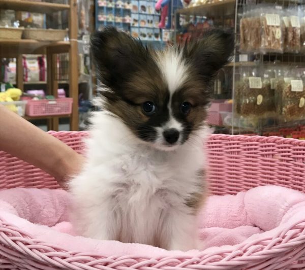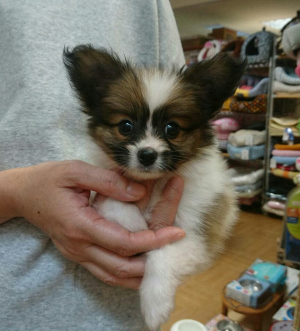 パピヨン リョータくん 6月1日生まれ 男の子 毛色 白茶 宮崎県出身ペットショップ・るんるん