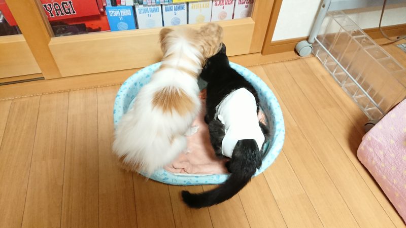 ナナちゃんが避妊手術の後キツかった時、ばんび自分が立ってるのもやっとでしたが、支えてました。