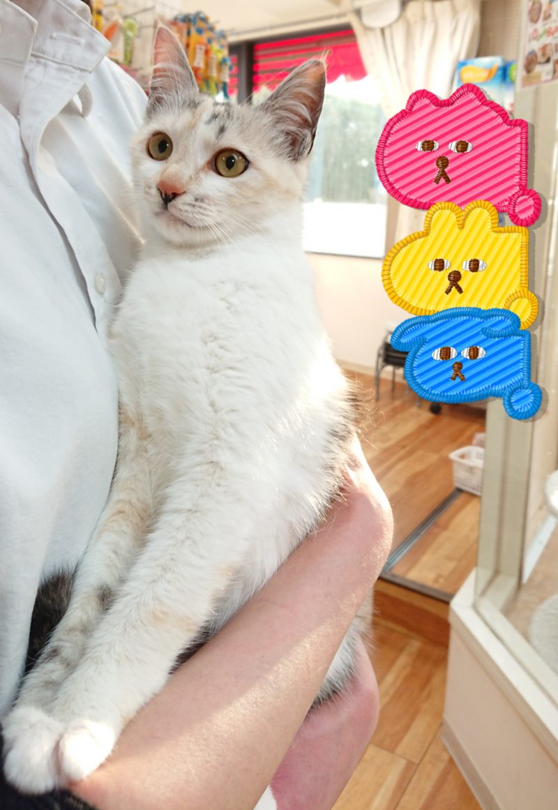 薄いけど、この柄、毛色も三毛なんですよ✨