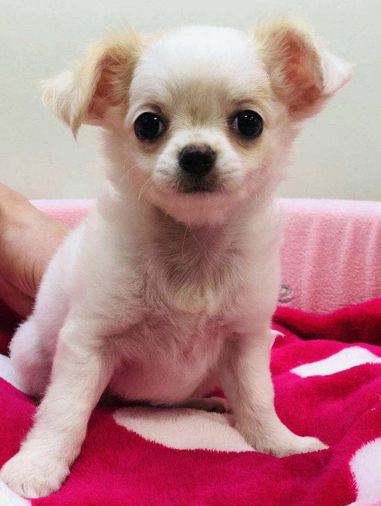 ロングコートチワワ 5月30日生まれ 女の子 毛色ホワイト&クリーム 宮崎県出身ペットショップ・るんるん
