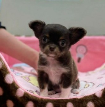 ロングコートチワワ 2月27日生まれ 女の子 毛色 チョコレート&ホワイト 宮崎県出身ペットショップ・るんるん