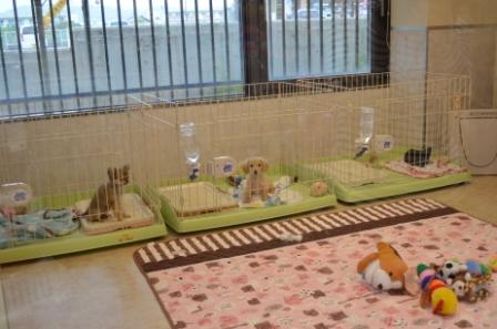 家庭環境により近いリビングで、ハウストレーニング・トイレットトレーニングをはじめ、仲間同士のコミュニケーションの取り方・音響慣れ・お留守番などさまざまな事を学んでくれています。