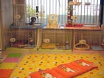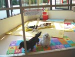 お散歩も、公園に近い場所、庭などを利用します。基本的に、ケージでの個別のお預かりとなります。