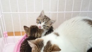 コメメちゃんとフレームちゃんですって💕五体満足、元気いっぱいすぎの、素晴らしい子猫たちよ(^ー^)