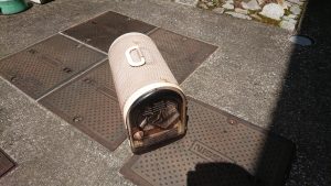ひー!またゴミ箱壊れるね、ロールカーテンのヒモちぎれるね😁
