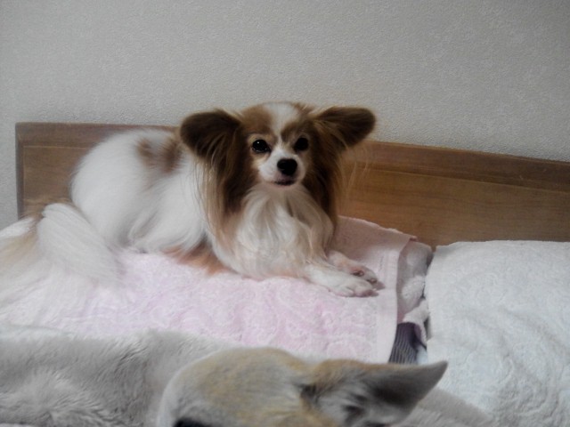 先生がここにおられるので、こももはしまわれました(笑)ベットに上がるのを覚えまして、しれっといますが(笑)先生の場所を通らなければ、ここには来られません。(^^)まだばんび先生は無理よ。よっと副担任はクリアしたね(笑)
