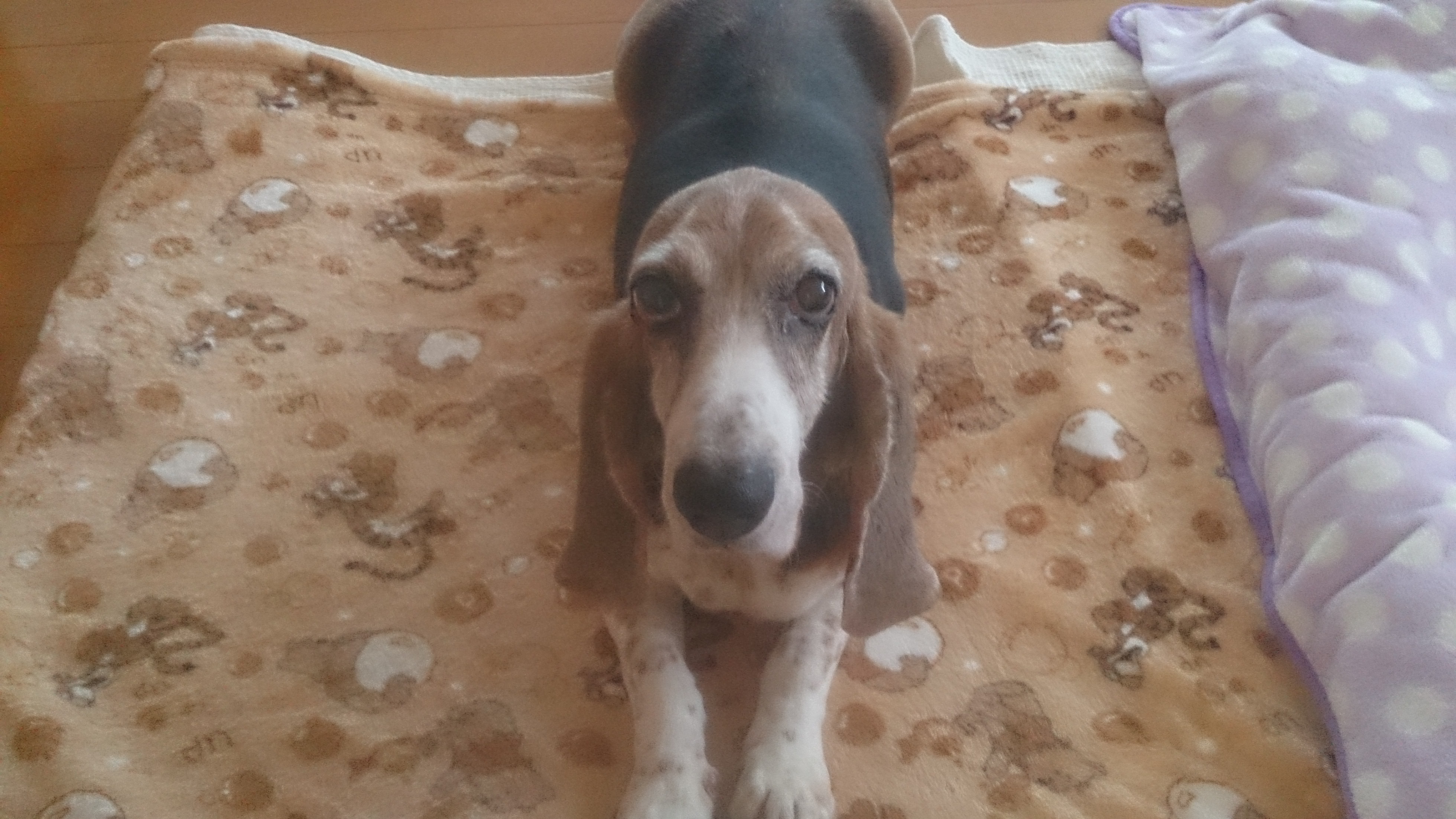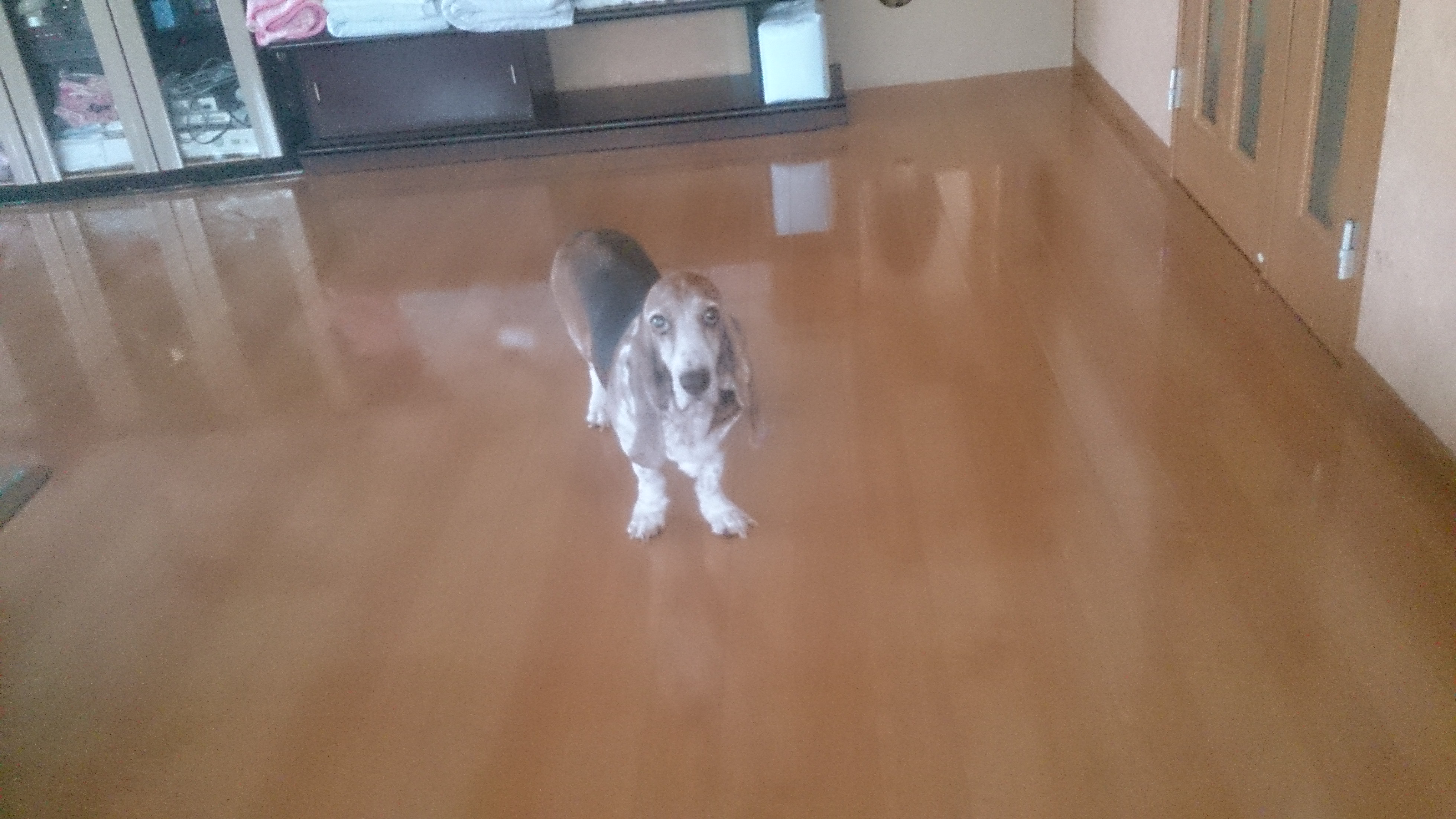 昨夜はブハーブハーと声を出して息をしていましたが、今朝は私が掃除や洗濯をするのに、少しついて回って、お供していました。