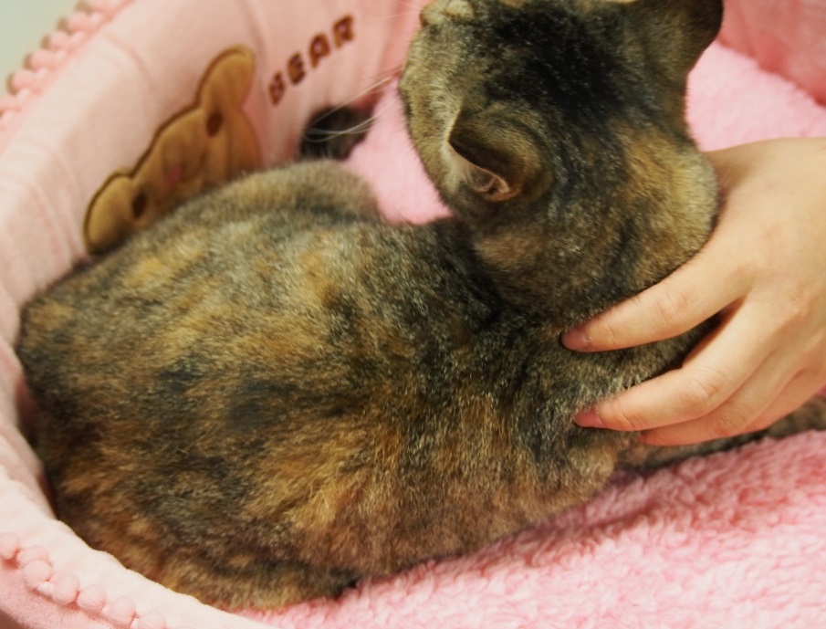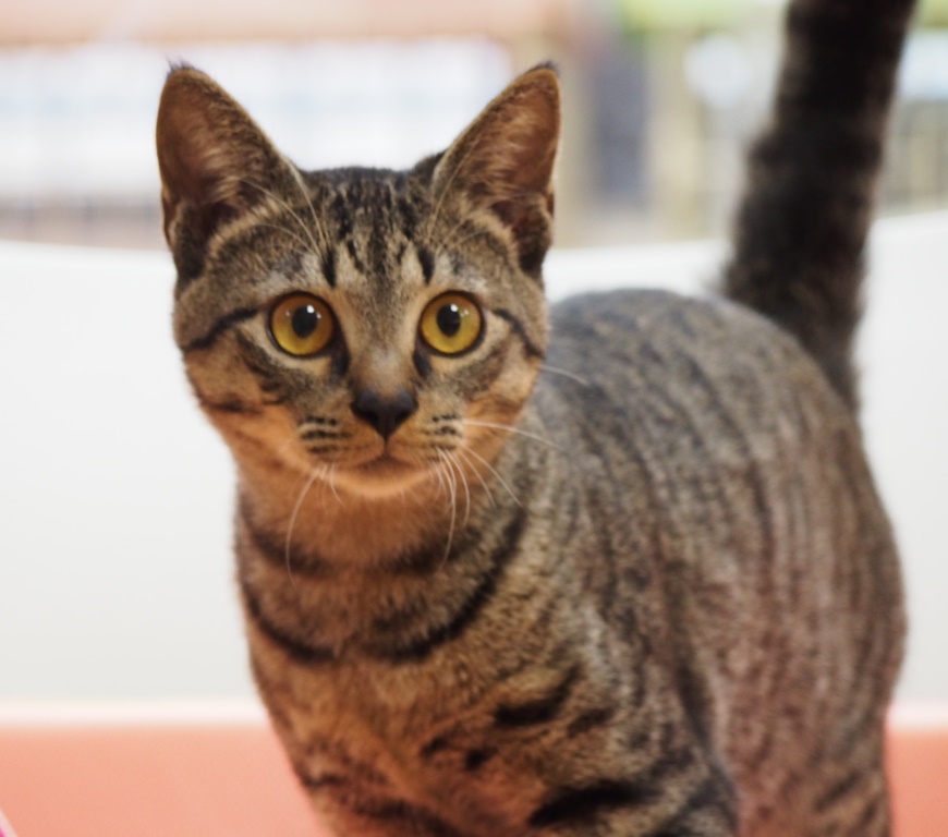で、毛色がちょっとだけ特徴ありで、キジトラなんですが、若干のマーブルというか、ベージュが入り込んでまして・・・