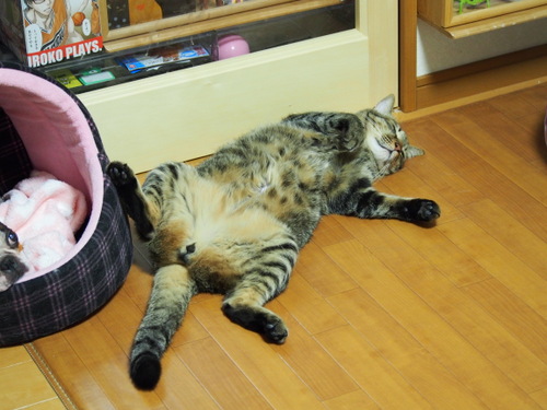あ。おまた開いてるのは、うちの猫たち、11名の中で唯一、オス(笑)はまださんからプリンスと言われた優次郎(^-^)みんなどうせこんなやろ、今(笑)
