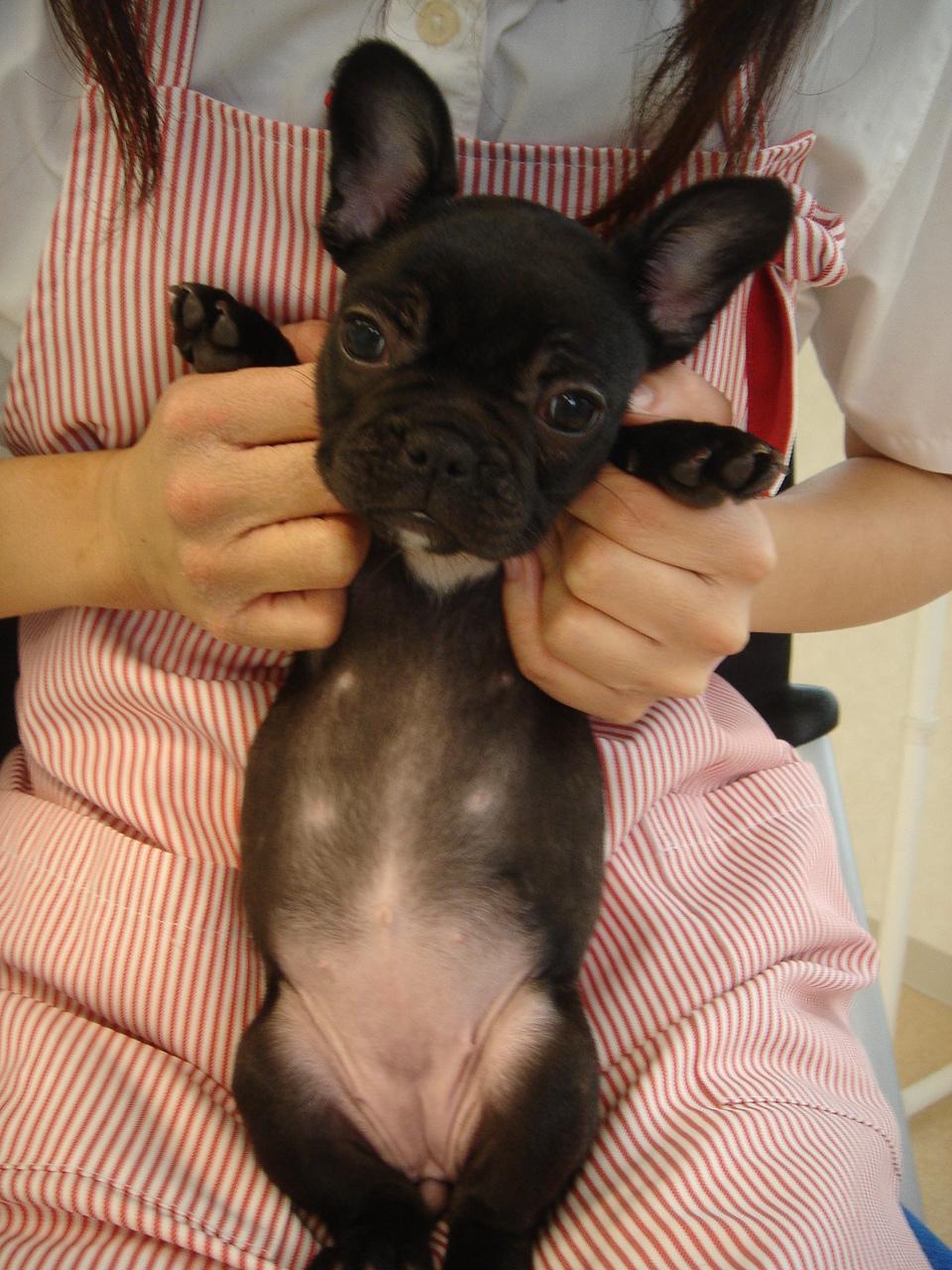 フレンチブルドックにしては、小さく、元気すぎるのですがコクシジウム症などでちょいと発育が遅れたりなんかして、小さかったんです。