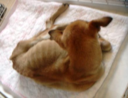 写真の通り、飢餓状態で、危ないって言われました。顔あげるのがいっぱいいっぱいで、おしっこやうんちも抱っこして連れて出てましたね、もうまともに歩けませんでしたから。
