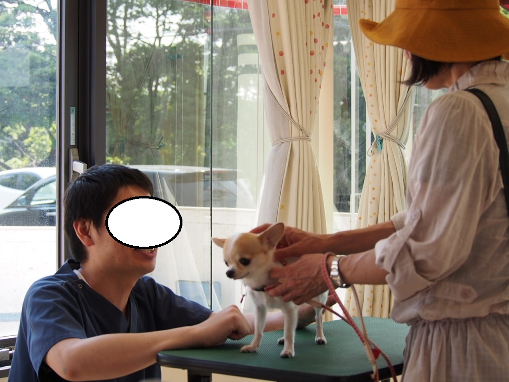 他の診察を受けていた子の写真は無いのですが、うーとうなるとかのしつけ?の相談も、かなり詳しく教えてくださっていたし、チャコちゃんの、ひざや腰、先日トリミングで皮膚のコンディションが悪かったので、その話や