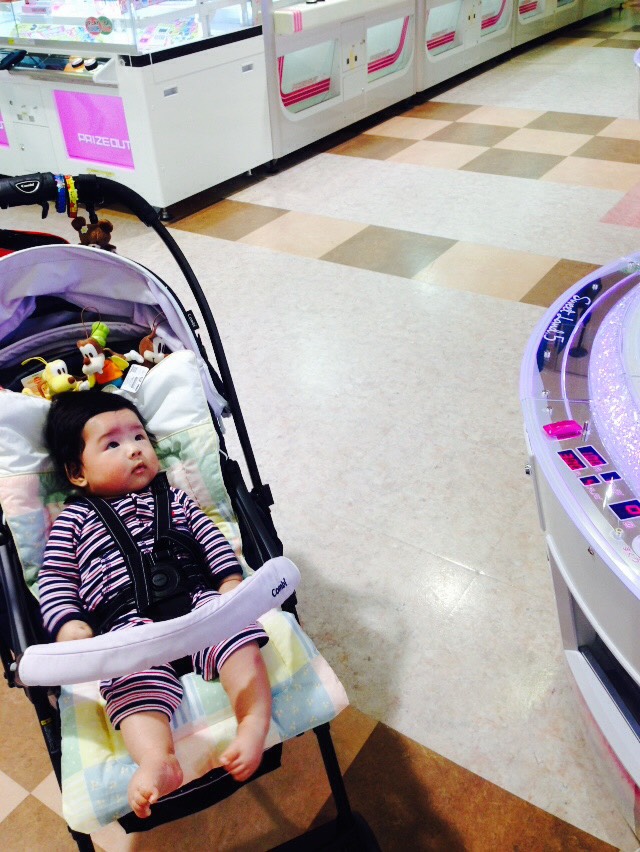 ケタケタ笑ったり、足をのびのびしたり、目で追ったりなんたりで、大好きゲーセン男。でも、イオンのゲーセン以外はムリですけどね、イオンのゲーセンはきれいですから。空気とか客層も(笑)