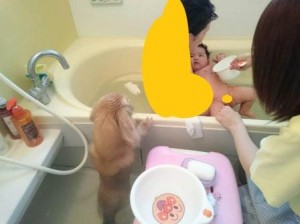 お姉ちゃんは、抱っこしてるだけ(笑)はまちゃんが洗う流す(笑)きょんきょんはチェック(笑)