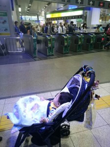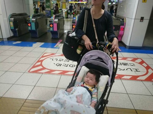 エレベーターの場所が分からないのと、遠すぎるので、もういいわ!と思って、ベビーカーごと抱えて階段を上がったり下がったり、山手線なので、電車が行って、次来るまでの階段の開く数分をねらって、とーーーーう。と・・・