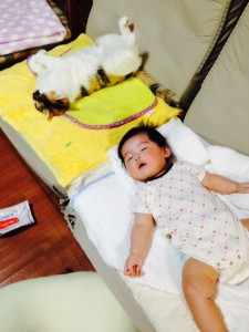 和田さんちは大家族なので、私とお姉ちゃんがお昼をごちそうになってる間、じゅんこぴー(和田さんのお母さん)が、暁を2階であやしてくれてて。