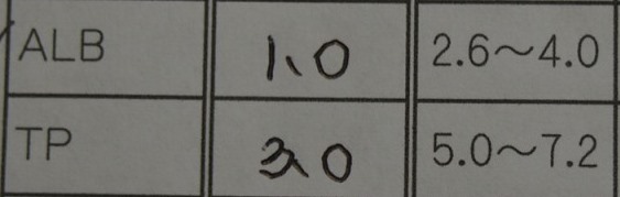 ALTというのがアルブミンの数字なのですが、1です。