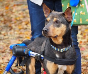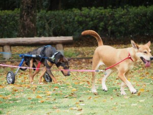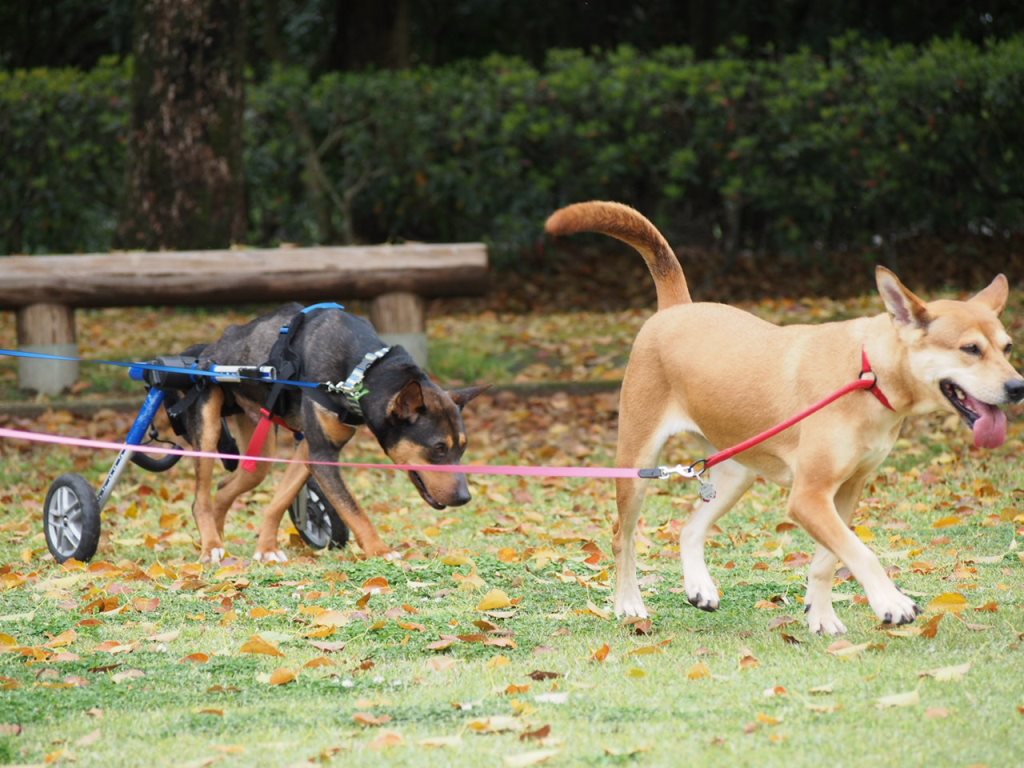 よっちゃんはこの車いすを使って、山下さんたちや保護家のスタッフさん、ボランティアの皆さんに運動をさせてもらっていなければ、自分で立つことはできなくても、立つ姿勢になり、自分で前へ進むことをさせてもらっていなければ、よっちゃんの犬生は、心身ともに確実に違っていたと思っています。