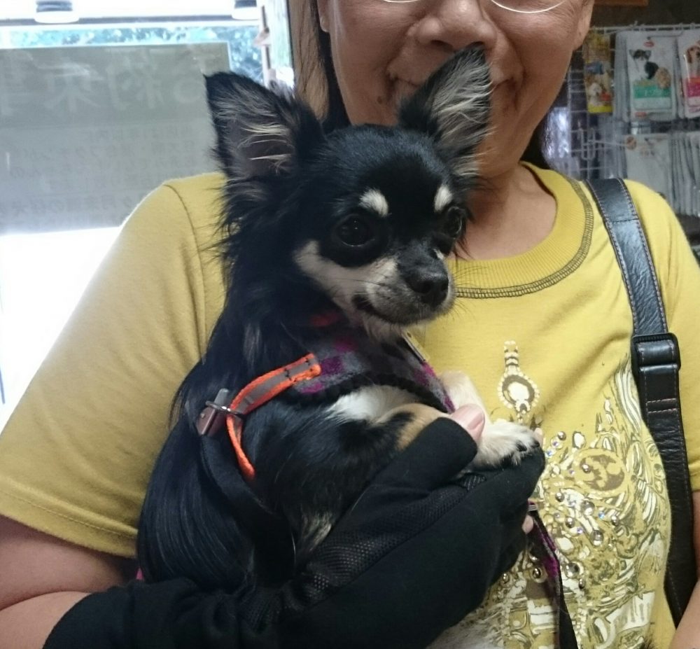 きょんきょんを院長に預け、店に帰るとるんるんでみなさま長くお世話になりました、チワワのニコルちゃん(るんるん名 にこ)が遊びに来てくれてて(σ≧▽≦)σ暑い中ありがとう!!
