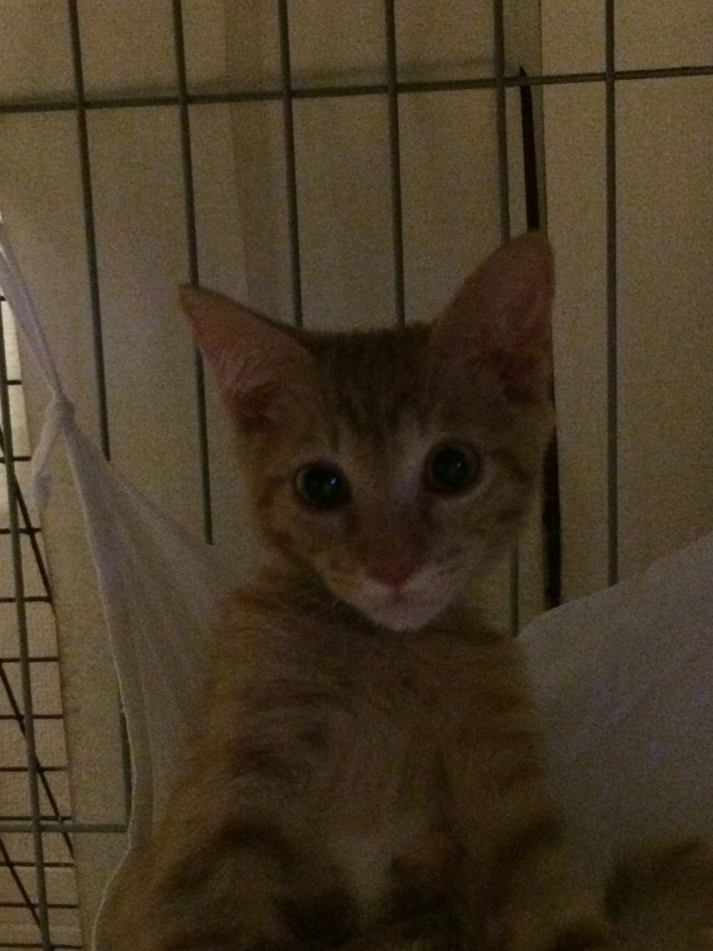 茶とらのなかなか人馴れできない坊やをお願いできないかと依頼があり、お受けしました。どんだけちびなのにシャーシャーしてんのかみもの(笑)みんな、ビビり具合を楽しみにしてます。ぷ