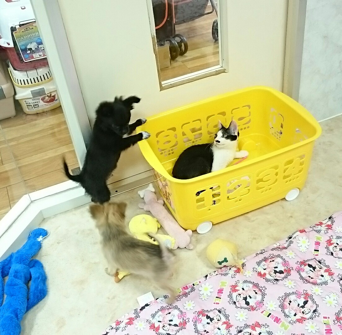 保護家の卒業生のミルクちゃんがお泊まりに来ていたので、会いに来てくださって(^_^)ミルクちゃん&よっちゃんで祭!舞踊り!(笑)よっちゃんが子犬の頃のミルクちゃんをお世話!面倒を見ちょった?Σ(゜Д゜)らしく(笑)まじうけた。かわいーの(о´∀`о)