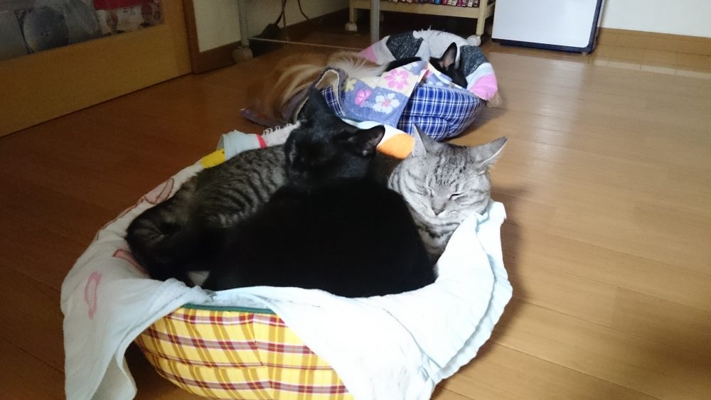 真ん中に犬たち猫たち。自分の子ではない責任の重さやらもう色々…。
