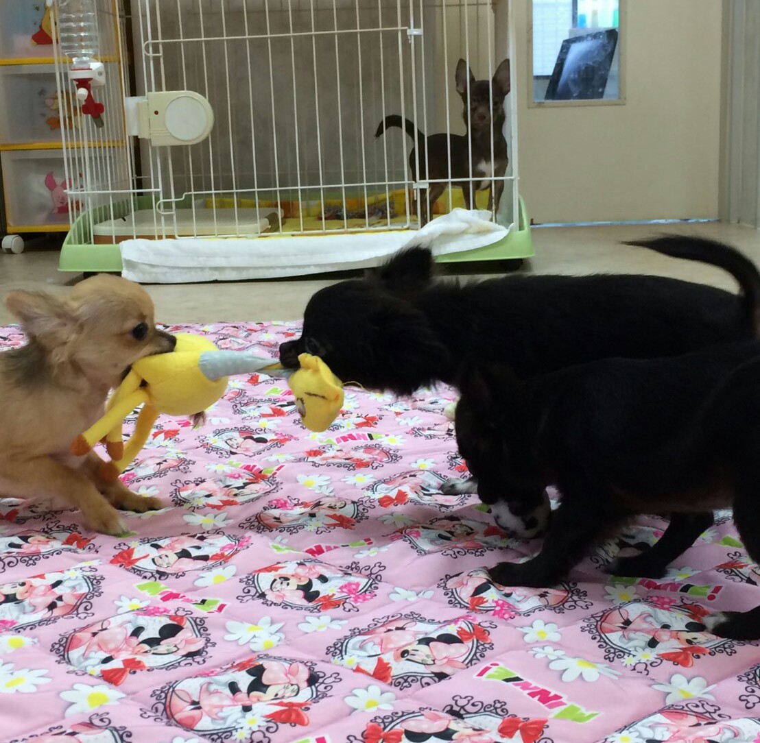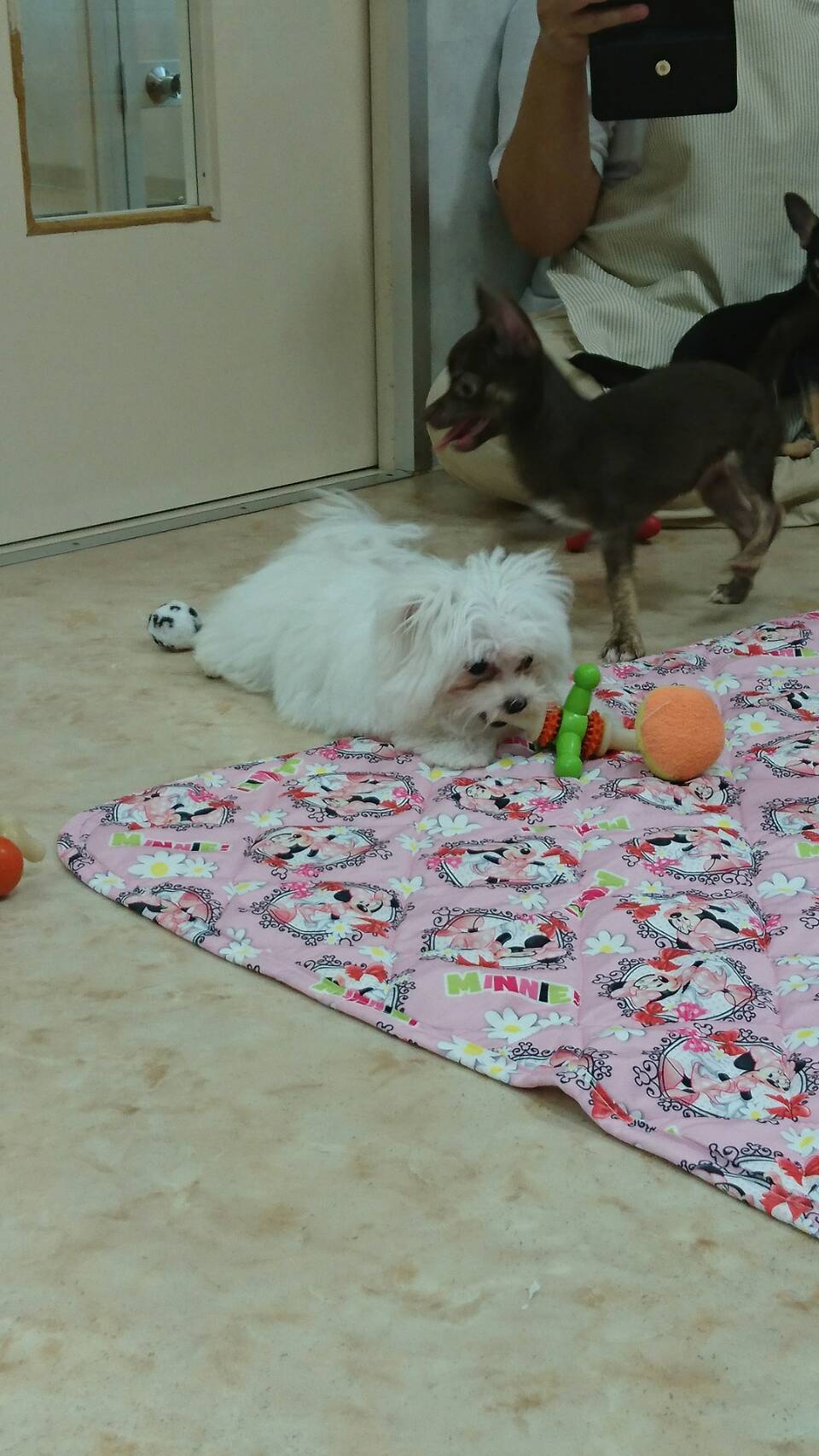 今日は、トリミングも早く終わり、ちびたちで、シャンプーデーの子は風呂に入り、雨だから山犬たちは散歩行けんね~のたまの穏やかな夕方(笑)時間がある時は、遊んでるとこでも写真撮って~とは言ってはいるが、今日は3人時間を作れたみたいで、ガンガンウケる写真が送られてきて(笑)