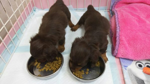 ダックスの兄妹ちゃん、おそのさんとコキリちゃんとほんわかデビュー待ち。