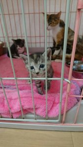 無事、ママファミリーと、同じお部屋に一緒に収容されていた、ベビーを山下さんとあたしで2腹分けて引き取りできました。山下さん、ありがとう(T_T)