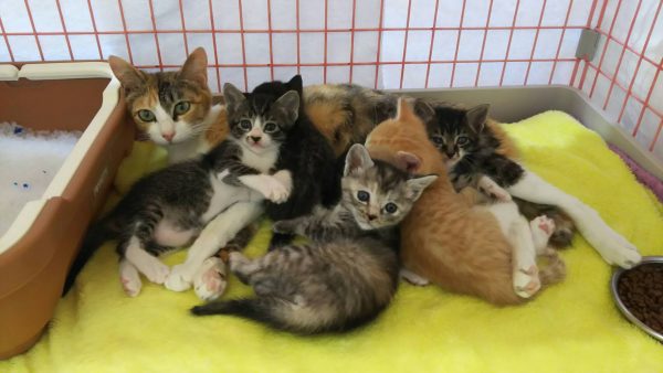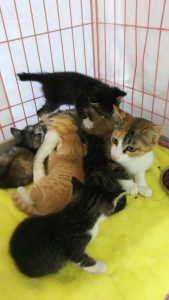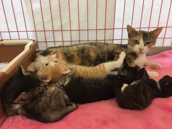 すぐ離乳できる子は、離乳に入り、こはくちゃんの負担をへらしてって。下痢をさせないようにしながら、高栄養食を与えて。回復につとめるよう院長から指示があり、ママのこはくを中心に子猫たちを育てケアするように、店長たちに任せてあります。
