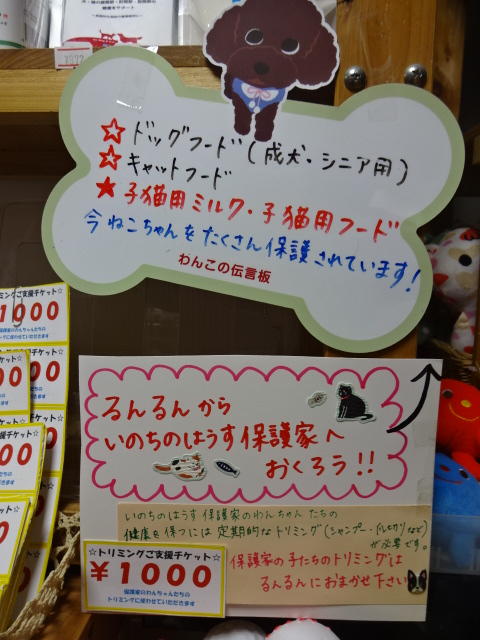 5月から、るんるんからいのちのはうす保護家へ送ろう!コーナーを作らせて頂いて。とても拙いですが・・・(/ω\)