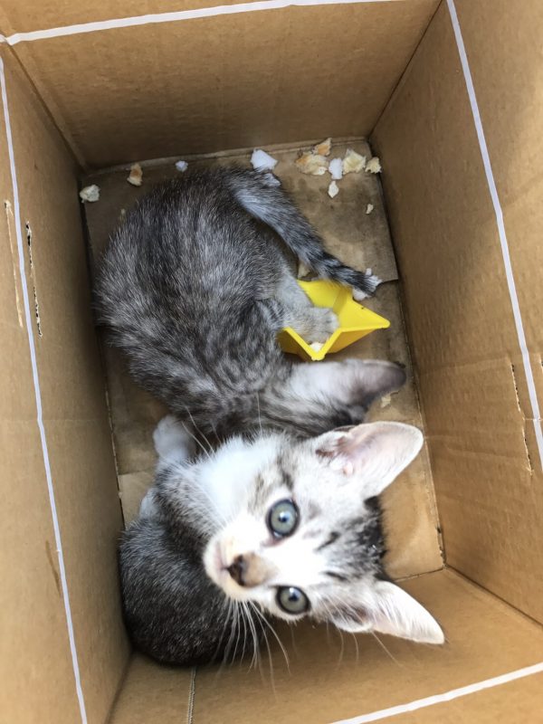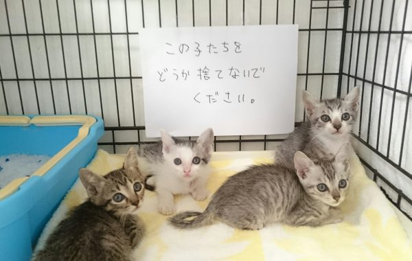 かわいいこの子をどうか拾ってください。って書いてあります。破けてるけど。
