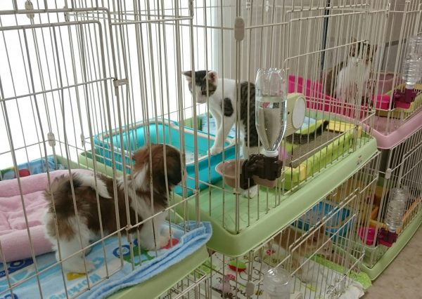かん太とおにぎり、もうサークル越しになんかやり合ってますんで、ほほえましく見てやって、ウケるよ( ´∀`)