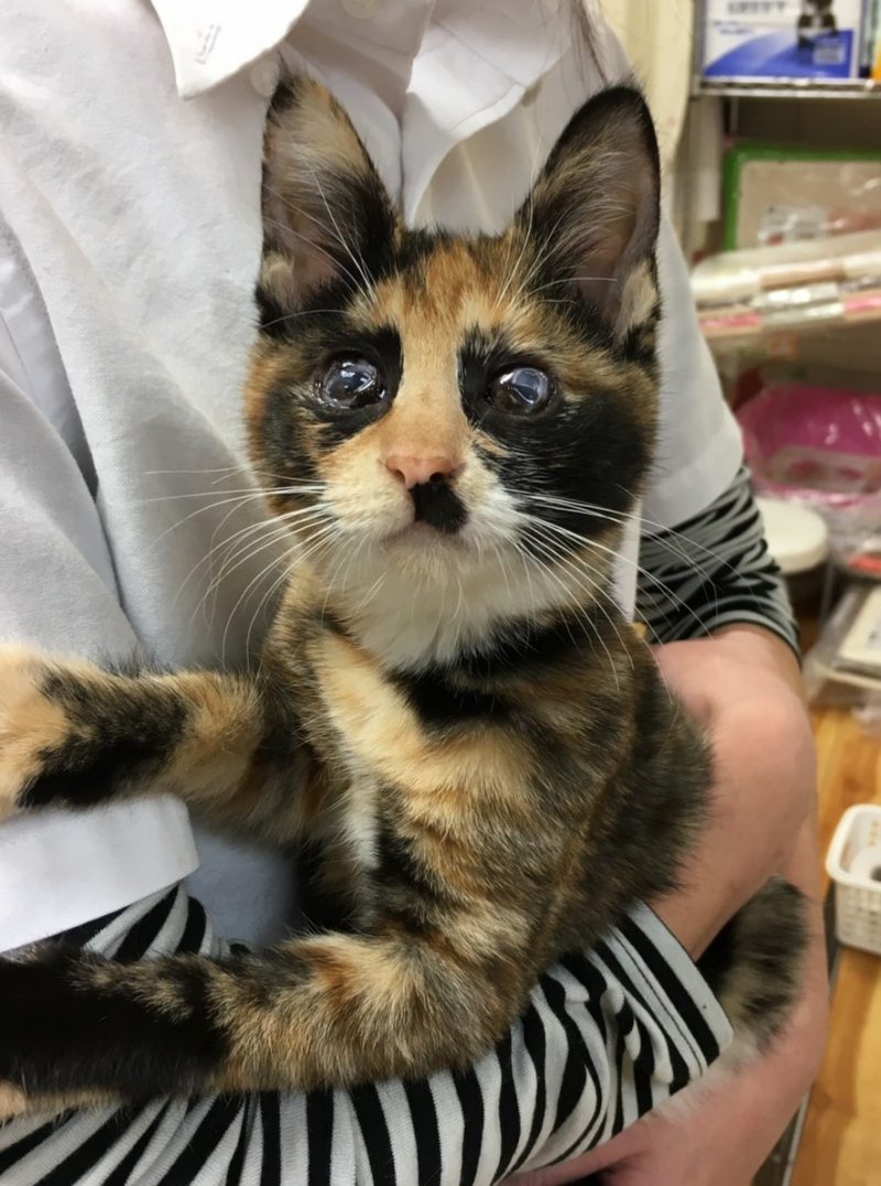 右のサビ柄のポコちゃんは、右の眼球がないのですが、無い子の中では良いそうで、よかった~(*´∀`)涙や目やにがでたらきれいにしてあげてねとの事。無いんだもん、無いの、ポコちゃんは(開き直り(笑))