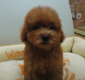 カットしてないんですけど、なんかまーんまるになったプーちゃんっち♪だんだん性格が分かってきて、この子は基本的に周りの影響がなければ、とてもおとなしい子であると判断。ふわっふわになったね^^たまらんよね、プードルのパピーの洗い立て^^わしゃわしゃしたいけど、仕上げたゆかちんに悪いんで、手あぶらとよだれはつけない事にします・・・。笑