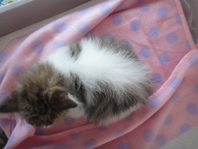 でも、油断しないようにちゃんとしないと、こんなふわふわでわかりませんが、体重500gですから。しっかり歯がはえそろっているので、2~3月かなーとか言ってました先生。あとは、しっぽの先が皮膚炎になっていたので、うんぴと一緒に行かなきゃね。いちお薬つけたけど。